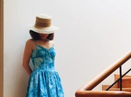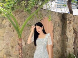 Áo dài cổ vuông cánh bướm nơ vai – Phạm Thuỷ